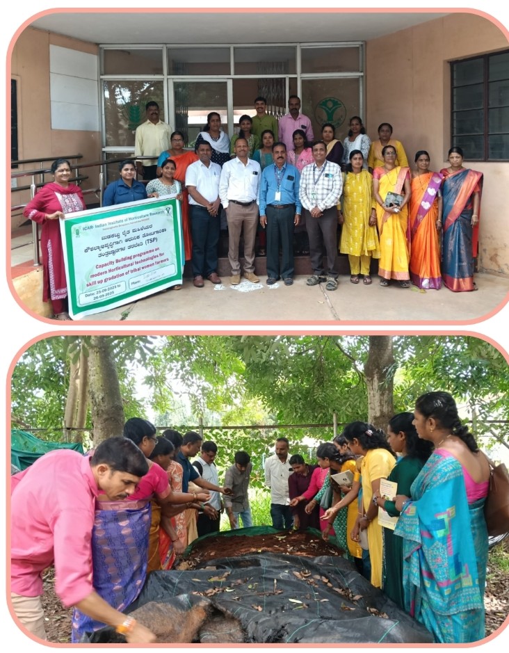 ಅಡಿಕೆ ಬೆಳೆಗೆ ಪರ್ಯಾಯ ಬೆಳೆಗಳ ಬಗ್ಗೆ ರೈತರಿಗೆ ಜಾಗೃತಿ ಮೂಡಿಸುವ ಉದ್ದೇಶದಿಂದ, ಐಸಿಎಆರ್ – ಐ ಐ ಹೆಚ್ ಆರ್ ಸಂಸ್ಥೆಯು ಐಸಿಎಆರ್ – ಕೆವಿಕೆ, ದಕ್ಷಿಣ ಕನ್ನಡ ಸಹಯೋಗದಲ್ಲಿ ಸುಳ್ಯ ತಾಲೂಕಿನ ಆದಿವಾಸಿ ರೈತರಿಗೆ ಹೈ-ಟೆಕ್ ತೋಟಗಾರಿಕೆ ಕುರಿತ ಎರಡು ದಿನಗಳ ಸಾಮರ್ಥ್ಯ ವೃದ್ಧಿ ಕಾರ್ಯಕ್ರಮವನ್ನು TSP (Tribal Sub Plan) ಯೋಜನೆಯ ಅನುದಾನದಡಿ ಆಯೋಜಿಸಿತು. ಡಾ. ಪ್ರಕಾಶ್ ಪಾಟೀಲ್ ನಿರ್ದೇಶಕರು (ಪ್ರಭಾರ), ಐಸಿಎಆರ್ – ಐ ಐ ಹೆಚ್ ಆರ್ ವತಿಯಿಂದ ಕಾರ್ಯಕ್ರಮವನ್ನು ಉದ್ಘಾಟಿಸಿ, ರೈತರು ಉತ್ಪಾದನೆ ಮತ್ತು ಆದಾಯ ಹೆಚ್ಚಿಸಲು ಸಂಸ್ಥೆ ಅಭಿವೃದ್ಧಿಪಡಿಸಿರುವ ಹೊಸ ತಂತ್ರಜ್ಞಾನಗಳನ್ನು ಅಳವಡಿಸಿಕೊಳ್ಳುವಂತೆ ಕರೆ ನೀಡಿದರು. ಕಾರ್ಯಕ್ರಮವನ್ನು ಡಾ. ಟಿ. ಎಚ್. ಸಿಂಗ್ ಪ್ರಧಾನ ವಿಜ್ಞಾನಿ (ತರಕಾರಿ ಬೆಳೆಗಳು) ಮತ್ತು TSP ಯೋಜನೆ ಸಂಯೋಜಕರ ಸಹಕಾರದೊಂದಿಗೆ ಆಯೋಜಿಸಲಾಗಿದ್ದು, ಡಾ. ವಿ. ಶಂಕರ್, ಪ್ರಧಾನ ವಿಜ್ಞಾನಿ(ತರಕಾರಿ ಬೆಳೆಗಳು), ಸಾಮಾಜಿಕ ವಿಜ್ಞಾನ ಮತ್ತು ತರಬೇತಿ ವಿಭಾಗ ಇವರ ಸಂಯೋಜನೆಯಲ್ಲಿ ನಡೆದಿತು. ಡಾ. ಸೆಂತಿಲ್ ಕುಮಾರ್, ಮುಖ್ಯಸ್ಥರು, ಸಾಮಾಜಿಕ ವಿಜ್ಞಾನ ಮತ್ತು ತರಬೇತಿ ವಿಭಾಗ, ತರಕಾರಿ ಬೆಳೆಗಳಲ್ಲಿ ಅರ್ಕ ಮೈಕ್ರೋಬಿಯಲ್ ಕಾಂಸಾರ್ಟಿಯಾ (AMC) ಬಳಕೆಯ ವಿಧಾನವನ್ನು ಪ್ರದರ್ಶಿಸಿದರು. ಡಾ. ವಿ.ಕೆ.ಜೆ. ರಾವ್, ನಿವೃತ್ತ ಪ್ರಧಾನ ವಿಜ್ಞಾನಿ (ವಿಸ್ತರಣೆ), ಸಾಮಾಜಿಕ ವಿಜ್ಞಾನ ಮತ್ತು ತರಬೇತಿ ವಿಭಾಗ, ಕೃಷಿ ಉದ್ಯಮ ಕುರಿತು ಉಪನ್ಯಾಸ ನೀಡಿದರು. ಡಾ. ಜಿ. ನಾರಾಯಣ ನಿವೃತ್ತ ಪ್ರಧಾನ ವಿಜ್ಞಾನಿ (ವಿಸ್ತರಣೆ), ಉತ್ಪಾದನೆ ಹಾಗೂ ಉತ್ಪಾದಕತೆ ಸುಧಾರಣೆಗೆ ವೈಜ್ಞಾನಿಕ ನಿರ್ವಹಣಾ ಪದ್ಧತಿಗಳನ್ನು ಅಳವಡಿಸಿಕೊಳ್ಳುವಂತೆ ರೈತರಿಗೆ ಸಲಹೆ ನೀಡಿದರು. ಡಾ. ಚೇತನ್ ಕುಮಾರ್, ಹಿರಿಯ ವಿಜ್ಞಾನಿ (ಮಣ್ಣಿನ ವಿಜ್ಞಾನ), ಮಣ್ಣಿನ ಮಾದರಿ ಸಂಗ್ರಹಣೆ ಬಗ್ಗೆ ಮಾಹಿತಿ ನೀಡಿ, ಮಣ್ಣಿನ ಪರೀಕ್ಷೆ ಆಧಾರಿತ ರಸಗೊಬ್ಬರ ಬಳಕೆ ಮಾಡುವಂತೆ ತಿಳಿಸಿದರು. ಡಾ. ವಿ. ಶಂಕರ್ ಕರಾವಳಿ ಕರ್ನಾಟಕಕ್ಕೆ ಸೂಕ್ತ ತರಕಾರಿ ಬೆಳೆಯ ಕುರಿತು ಮಾಹಿತಿ ನೀಡಿ, ರೈತರನ್ನು ATIC ಕೇಂದ್ರಕ್ಕೆ ಕರೆದೊಯ್ದು ಲಭ್ಯವಿರುವ ತಂತ್ರಜ್ಞಾನಗಳು ಹಾಗೂ ಉತ್ಪನ್ನಗಳ ಬಗ್ಗೆ ತಿಳುವಳಿಕೆ ನೀಡಿದರು. ಡಾ. ರೀನಾ ರೋಸಿ ಥಾಮಸ್, ಪ್ರಧಾನ ವಿಜ್ಞಾನಿ (ಮಾಹಿತಿ ತಂತ್ರಜ್ಞಾನ), ತಂತ್ರಜ್ಞಾನ, ಬೆಳೆಗಳು ಹಾಗೂ ಸುಧಾರಿತ ಪದ್ಧತಿಗಳ ಮಾಹಿತಿಗಾಗಿ ಸಂಸ್ಥೆ ಅಭಿವೃದ್ಧಿಪಡಿಸಿರುವ ಮೊಬೈಲ್ ಅಪ್ಲಿಕೇಶನ್ ಅನ್ನು ಪ್ರದರ್ಶಿಸಿದರು. ಕಾರ್ಯಕ್ರಮದ ಅಂಗವಾಗಿ ರೈತರು ಈ ಕೆಳಗಿನ ಘಟಕಗಳಿಗೆ ಕ್ಷೇತ್ರ ಸಂದರ್ಶನ ಮಾಡಿದರು: ATIC ಕೇಂದ್ರ ಹಣ್ಣು-ತರಕಾರಿ ಸಂಸ್ಕರಣೆ ಘಟಕ, ಅಣಬೆ ಉತ್ಪಾದನಾ ಘಟಕ, ನರ್ಸರಿ, ತರಕಾರಿ, ಹಣ್ಣು, ಹೂವಿನ ಪ್ರದರ್ಶನ ತೋಟಗಳು ಕೊಯಿರ್ ಪಿತ್ ಉತ್ಪಾದನಾ ಘಟಕ, BESST ತೋಟಗಾರಿಕಾ ಘಟಕ, ಸುಳ್ಯ ತಾಲೂಕಿನ ಆರು ಗ್ರಾಮ ಪಂಚಾಯತ್ ಗಳಿಂದ ಆಯ್ಕೆಯಾದ ಬುಡಕಟ್ಟು ರೈತರು ಕಾರ್ಯಕ್ರಮದಲ್ಲಿ ಭಾಗವಹಿಸಿದರು. ಅವರಿಗೆ ಪ್ರಮಾಣಪತ್ರ, ಬೀಜ ಕಿಟ್, ಜೈವಿಕ ಗೊಬ್ಬರ, ಜೈವಿಕ ಕೀಟನಾಶಕ, ಸೂಕ್ಷ್ಮ ಪೋಷಕಾಂಶ ಮಿಶ್ರಣ, ತರಕಾರಿ ಸ್ಪೆಷಲ್ ಹಾಗೂ ತಾಂತ್ರಿಕ ಕೈಪಿಡಿ ವಿತರಿಸಲಾಯಿತು.