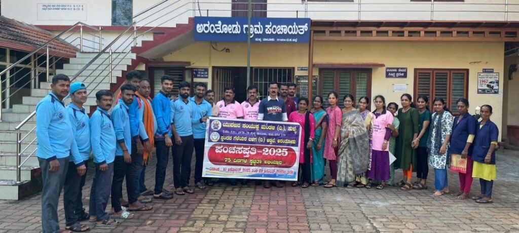 ಯುವಜನ ಸಂಯುಕ್ತ ಮಂಡಳಿ (ರಿ.)ಸುಳ್ಯ ಇದರ ಆಶ್ರಯದಲ್ಲಿ ಸ್ಪಂದನ ಗೆಳೆಯರ ಬಳಗ (ರಿ.) ಅಡ್ತಲೆ ಇವರ ವತಿಯಿಂದ ಪಂಚಸಪ್ತತಿ ಸ್ವಚ್ಛತಾ ಅಭಿಯಾನದ ನಾಲ್ಕನೇ ಕಾರ್ಯಕ್ರಮ ಅರಂತೋಡು ಗ್ರಾಮ ಪಂಚಾಯತಿಯ ರಾಷ್ಟ್ರೀಯ ಹೆದ್ದಾರಿ ಸ್ವಚ್ಛತಾ ಕಾರ್ಯಕ್ರಮದೊಂದಿಗೆ ನಡೆಯಿತು.ಗ್ರಾಮ ಪಂಚಾಯತ್ ಅರಂತೋಡು,ಚಂದನ ಯುವತಿ ಮಂಡಲ (ರಿ.) ಅಡ್ತಲೆ, ನಾಗರಿಕ ಹಿತರಕ್ಷಣಾ ವೇದಿಕೆ ಅಡ್ತಲೆಯ ಸಹಯೋಗದೊಂದಿಗೆ ನಡೆದ ಈ ಸ್ವಚ್ಛತಾ ಕಾರ್ಯಕ್ರಮದಲ್ಲಿ ಸುಮಾರು 30ಕ್ಕೂ ಮಿಕ್ಕಿ ಸದಸ್ಯರು ಸ್ವಚ್ಛತಾ ಕಾರ್ಯದಲ್ಲಿ ಭಾಗವಹಿಸಿದರು. ಮಾಣಿ-ಮೈಸೂರು ರಾಷ್ಟ್ರೀಯ ಹೆದ್ದಾರಿಯ ಇಕ್ಕೆಲಗಳ ಸಹಿತ ಅರಂತೋಡು ಪೇಟೆಯಲ್ಲಿ ಸ್ವಚ್ಛತೆಯನ್ನು ಮಾಡಲಾಯಿತು.ಗ್ರಾಮ ಪಂಚಾಯತ್ ಅಧ್ಯಕ್ಷರಾದ ಕೇಶವ ಅಡ್ತಲೆ, ಪಂಚಾಯತ್ ಅಭಿವೃದ್ಧಿ ಅಧಿಕಾರಿಯಾದ ಜಯಪ್ರಕಾಶ್ ಎಂ.ಆರ್ ಹಾಗೂ ಪಂಚಾಯತ್ ಸಿಬ್ಬಂದಿಗಳು, ಘನತ್ಯಾಜ್ಯ ಘಟಕದ ಸಿಬ್ಬಂದಿಗಳು ಸಹಕರಿಸಿದರು.