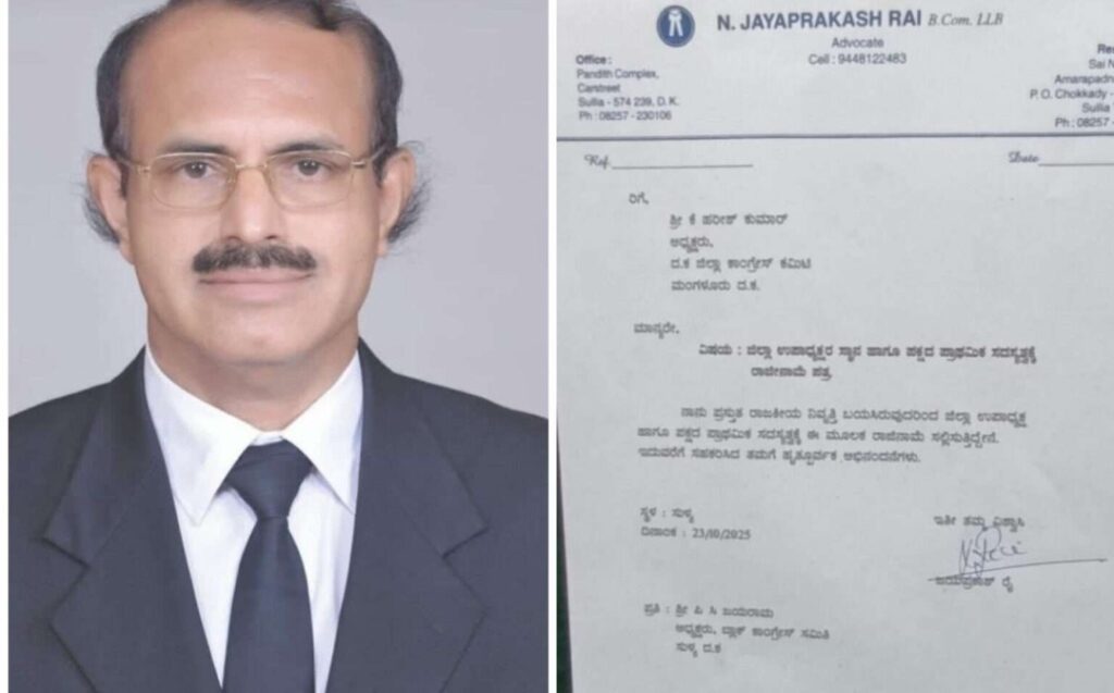 ಸುಳ್ಯ : ಜಿಲ್ಲಾ ಕಾಂಗ್ರೆಸ್ ಉಪಾಧ್ಯಕ್ಷ ಎನ್. ಜಯಪ್ರಕಾಶ್ ರೈ ರಾಜಕೀಯ ನಿವೃತ್ತಿ ಘೋಷಣೆ