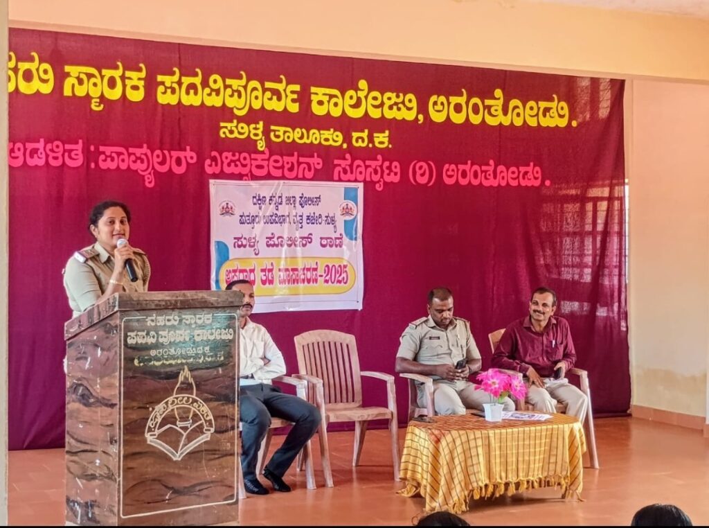 ಅರಂತೋಡು : ನೆಹರು ಸ್ಮಾರಕ ಪದವಿ ಪೂರ್ವ ಕಾಲೇಜಿನಲ್ಲಿ ಅಪರಾಧ ತಡೆ ಮಾಸಾಚರಣೆ