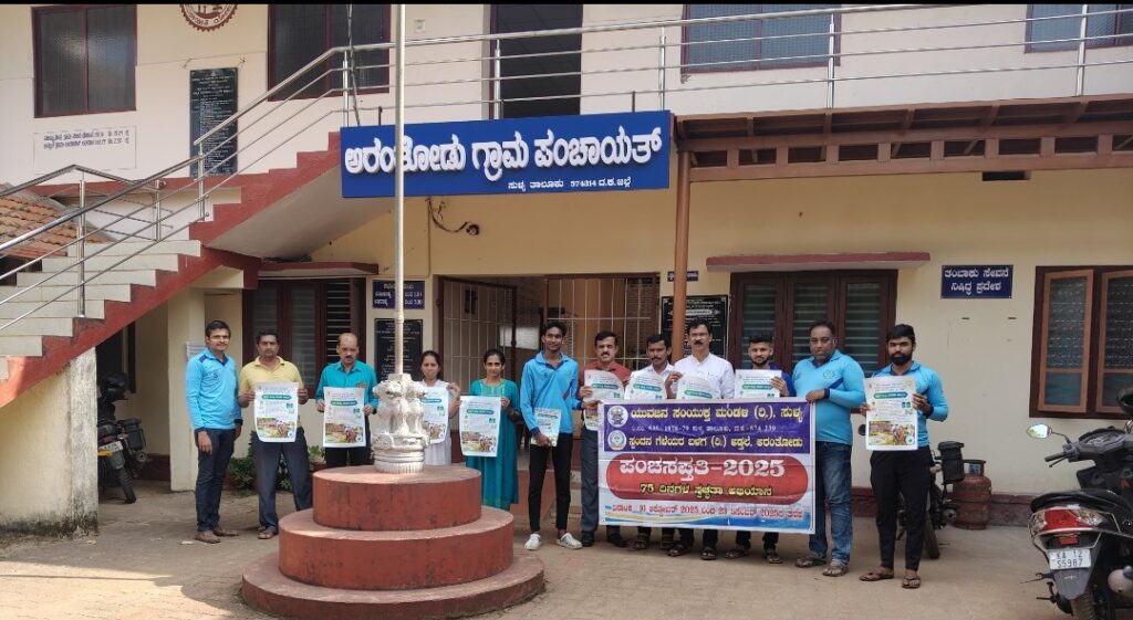 ಯುವಜನ ಸಂಯುಕ್ತ ಮಂಡಳಿ (ರಿ.) ಸುಳ್ಯ ಇದರ ಪಂಚಸಪ್ತತಿ ಸ್ವಚ್ಛತಾ ಅಭಿಯಾನ-2025 ರ ಅಂಗವಾಗಿ ಸ್ಪಂದನ ಗೆಳೆಯರ ಬಳಗ (ರಿ.) ಅಡ್ತಲೆ ಇವರ ವತಿಯಿಂದ ಗ್ರಾಮ ಪಂಚಾಯತ್ ಅರಂತೋಡು ಇವರ ಸಹಯೋಗದೊಂದಿಗೆ ಸ್ವಚ್ಛತಾ ಜಾಗೃತಿ ಕುರಿತ ಭಿತ್ತಿಪತ್ರಗಳ ಅನಾವರಣ ಹಾಗೂ ಅಳವಡಿಸುವ ಕಾರ್ಯವು ಅರಂತೋಡಿನಲ್ಲಿ ನಡೆಯಿತು. ಗ್ರಾಮ ಪಂಚಾಯತ್ ಅಧ್ಯಕ್ಷರಾದ ಕೇಶವ ಅಡ್ತಲೆ, ಪಂಚಾಯತ್ ಅಭಿವೃದ್ಧಿ ಅಧಿಕಾರಿ ಜಯಪ್ರಕಾಶ್ ಎಂ.ಆರ್ ಭಿತ್ತಿಪತ್ರವನ್ನು ಬಿಡುಗಡೆ ಮಾಡಿದರು. ಈ ಸಂದರ್ಭದಲ್ಲಿ ಪಂಚಾಯತ್ ಸದಸ್ಯರಾದ ರವೀಂದ್ರ ಪೂಜಾರಿ ಪಂಜಿಕೋಡಿ,ಅರಂತೋಡು ಸೊಸೈಟಿಯ ಉಪ-ಮುಖ್ಯಕಾರ್ಯನೀರ್ವಹಣಾಧಿಕಾರಿ ಪ್ರದೀಪ್ ಕುಮಾರ್, ಪಂಚಾಯತ್ ಸಿಬ್ಬಂದಿಗಳು ಹಾಗೂ ಸ್ಪಂದನದ ಸದಸ್ಯರು ಹಾಜರಿದ್ದರು. ಅರಂತೋಡಿನ ಎಲ್ಲಾ ಅಂಗಡಿಗಳಿಗೆ ಹಾಗೂ ಸಾರ್ವಜನಿಕ ಸ್ಥಳಗಳಲ್ಲಿ ಭಿತ್ತಿಪತ್ರವನ್ನು ಅಳವಡಿಸಲಾಯಿತು.