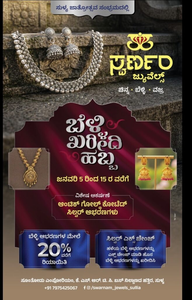 ಜ.5 ರಿಂದ 15 ರವೆಗೆ ಸುಳ್ಯದ ಸ್ವರ್ಣಂ ಜ್ಯುವೆಲ್ಸ್ ನಲ್ಲಿ ಬೆಳ್ಳಿ ಖರೀದಿ ಹಬ್ಬ