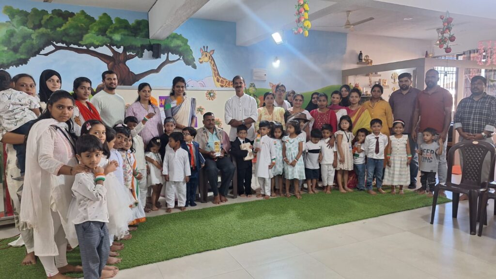 ಪುಟಾಣಿಗಳಿಗೆ ಉಡುಗೊರೆಯನ್ನು ನೀಡಿ ಸಂತೈಸಿದರು. ಇದೇ ಶುಭ ಸಂದರ್ಭದಲ್ಲಿ ನಿವೃತ್ತ ಯೋಧರಾದ ಮುಖ್ಯ ಅತಿಥಿಗಳನ್ನು ಶಾಲಾ ಪರವಾಗಿ ಸನ್ಮಾನಿಸಿ ಗೌರವಿಸಲಾಯಿತು.
