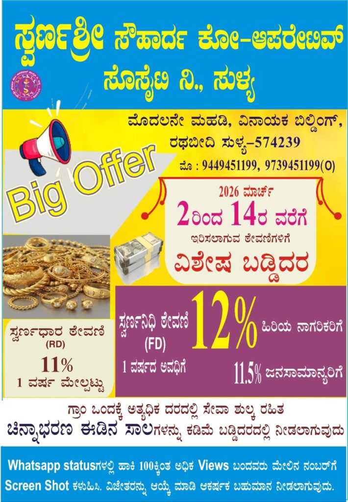 ಜಾಲ್ಸೂರು ಗ್ರಾಮದ ಸೋಣಂಗೇರಿಯ ಶ್ರೀ ಕೃಷ್ಣ ಭಜನಾ ಮಂದಿರದ ಜೀರ್ಣೋದ್ಧಾರ ಕಾರ್ಯಗಳು ಭರದಿಂದ ಸಾಗುತ್ತಿದ್ದು, ಮಂದಿರ ವೀಕ್ಷಣೆಗೆ ಮತ್ತು ಆಶೀರ್ವಚನ ನೀಡಲು ಮಾಣಿಲ ಮೋಹನದಾಸ ಪರಮಹಂಸ ಸ್ವಾಮೀಜಿಗಳು ಮಾ.7ರಂದು ಅಪರಾಹ್ನ 3.00ಗಂಟೆಗೆ ಆಗಮಿಸಲಿದ್ದಾರೆ. ಇದೇ ಸಂದರ್ಭದಲ್ಲಿಖ್ಯಾತ ಗಾಯಕ ಶಶಿಧರ ಕೋಟೆ ಅವರು ರಚಿಸಿ ಹಾಡಿದ ಧ್ವನಿ ಮುದ್ರಿತ ಭಕ್ತಿ ಗೀತೆ ಬಿಡುಗಡೆ ಕಾರ್ಯಕ್ರಮ ನಡೆಯಲಿದೆ.ಮಾಜಿ ಸಚಿವರಾದ ಎಸ್. ಅಂಗಾರ, ಪ್ರಮುಖರಾದ ವೆಂಕಟ್ ವಳಲಂಬೆ, ಚಂದ್ರ ಕೋಲ್ಚಾರ್, ಅಡ್ಡಂತಡ್ಕ ದೇರಣ್ಣ ಗೌಡ, ಶ್ರೀಕಾಂತ್ ಗೋಲ್ವಳ್ಕರ್, ಲಕ್ಷ್ಮೀ ನಾರಾಯಣ ಉದ್ಯಮಿಗಳು […]
